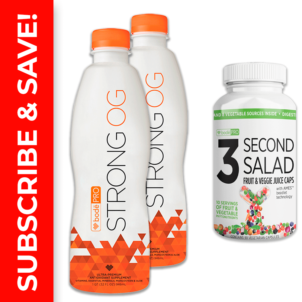 Our Cellular Pack OG combines the power of 10 servings of fruit & vegetable phytonutrients, 72 essential minerals, and potent digestive enzymes with the clinically studied power of Strong OG, the original liquid immune booster packed with 12 essential vitamins, over 65 plant-sourced minerals, whole-fruit mangosteen, organic glyconutrient-rich aloe vera, and organic decaffeinated green tea for the ultimate nutritional foundation.*