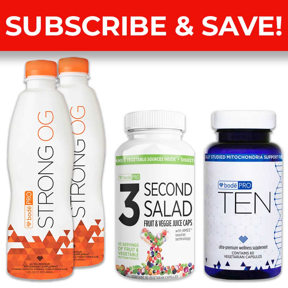 The Complete Cellular Pack OG is the ultimate trio of cellular wellness, combining the power of 3 Second Salad, Strong OG, and TEN to supercharge your body at the cellular level.*